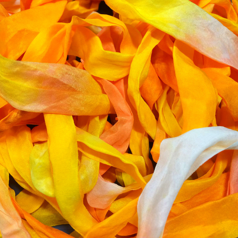黄色にそめたシルクリボンの上に