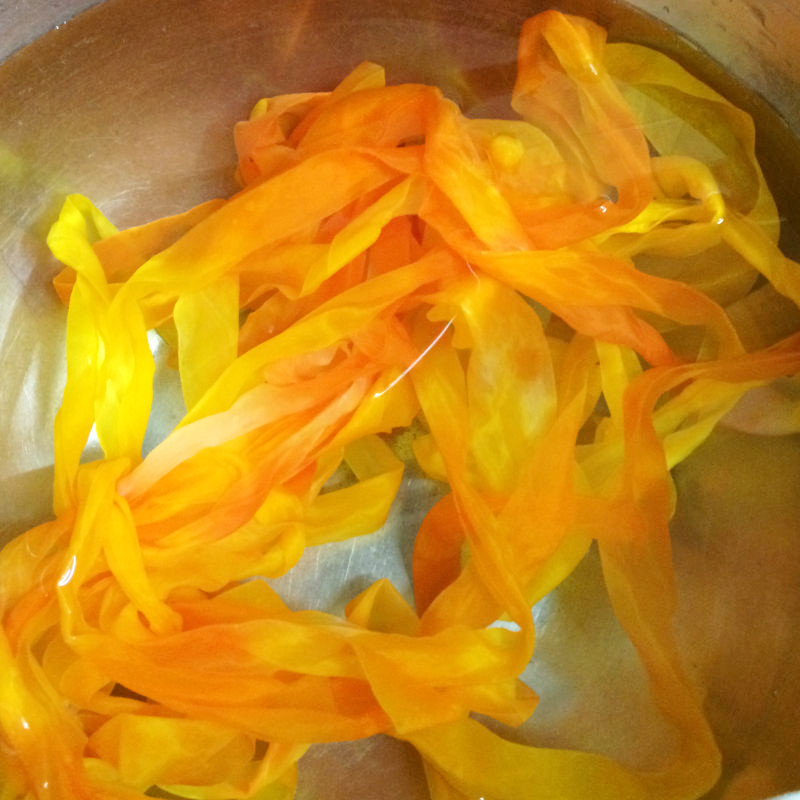 黄色に赤色をプラスしてムラに染めてみました。