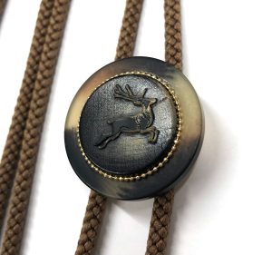本物志向の方に 中の鹿の彫り物そしてまわりのボタン全て水牛の角から出来ております。