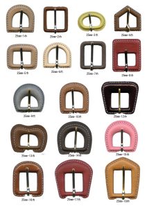 形ではピン付バックル、引掛けバックル、トップバックル、ローラーバックル、クルミバックル、通しバックル等が一般的ですね。