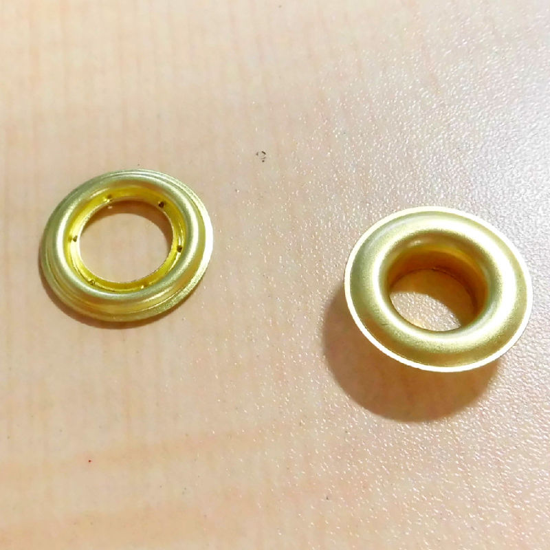 ハトメとは服、靴などの紐を通す穴に取り付けるリング状の金具です。