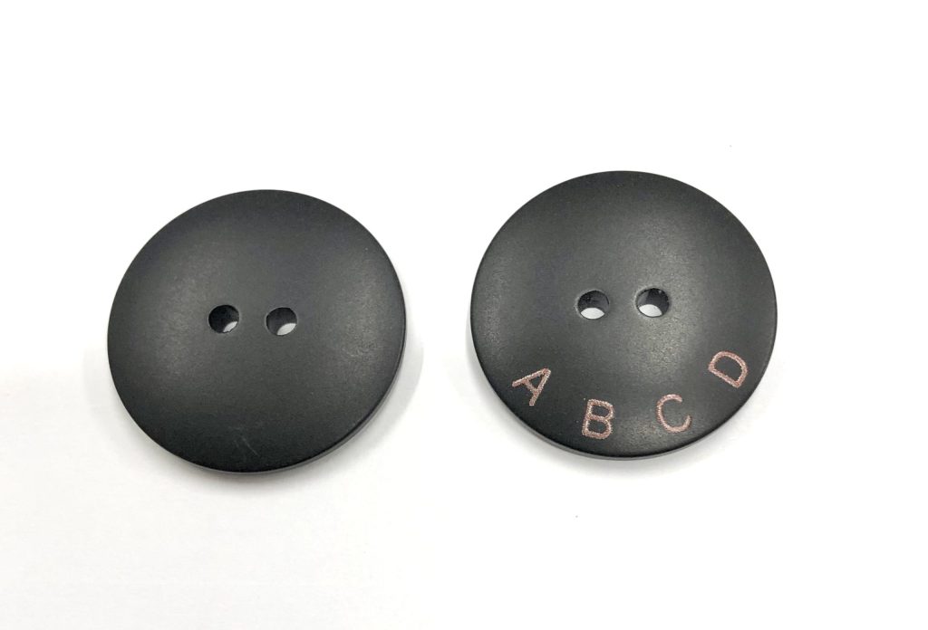 オリジナルのボタン プリントロゴも素敵ですよね。レーザー加工、プリントなどの加工可能です。 -